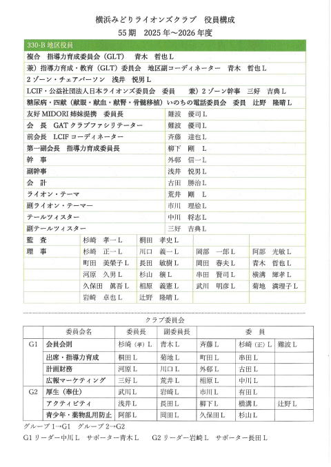 横浜みどりライオンズクラブ 役員構成